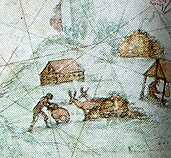 It is here in the deep south of NZ that the last Moa survived, and it is likely that Mendonça would have accompanied Maori on a hunt for provisions. It is probably here that he saw the huge birds that would be extinct by the next century, and that he reproduced faithfully on the map.