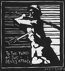 During World War Two, Peter McIntyre, Russell Clark (image below), and Alan Barns-Graham became official war artists. In contrast with McIntyre's popular action paintings, a more pointed statement about war was "Guadalcanal" (1946) by William J Reed.